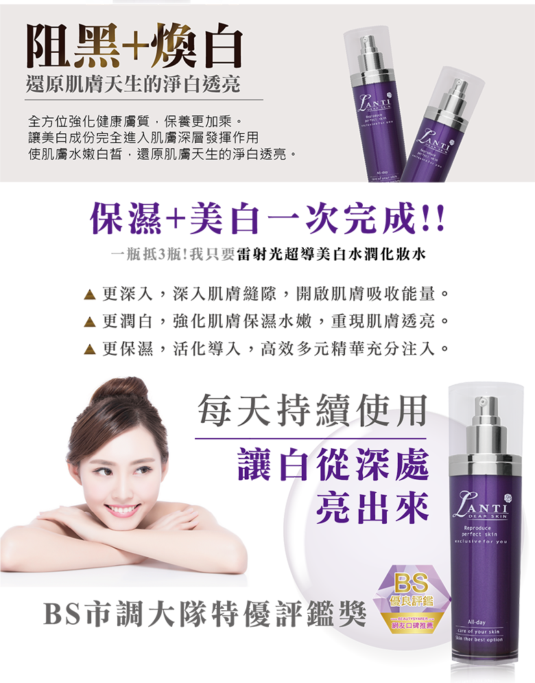 ◆商品名稱: Lanti雷射光超導美白水潤化妝水