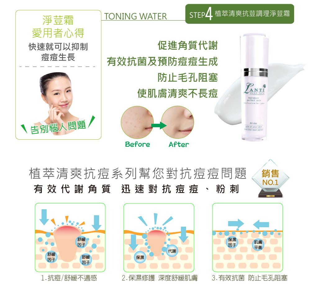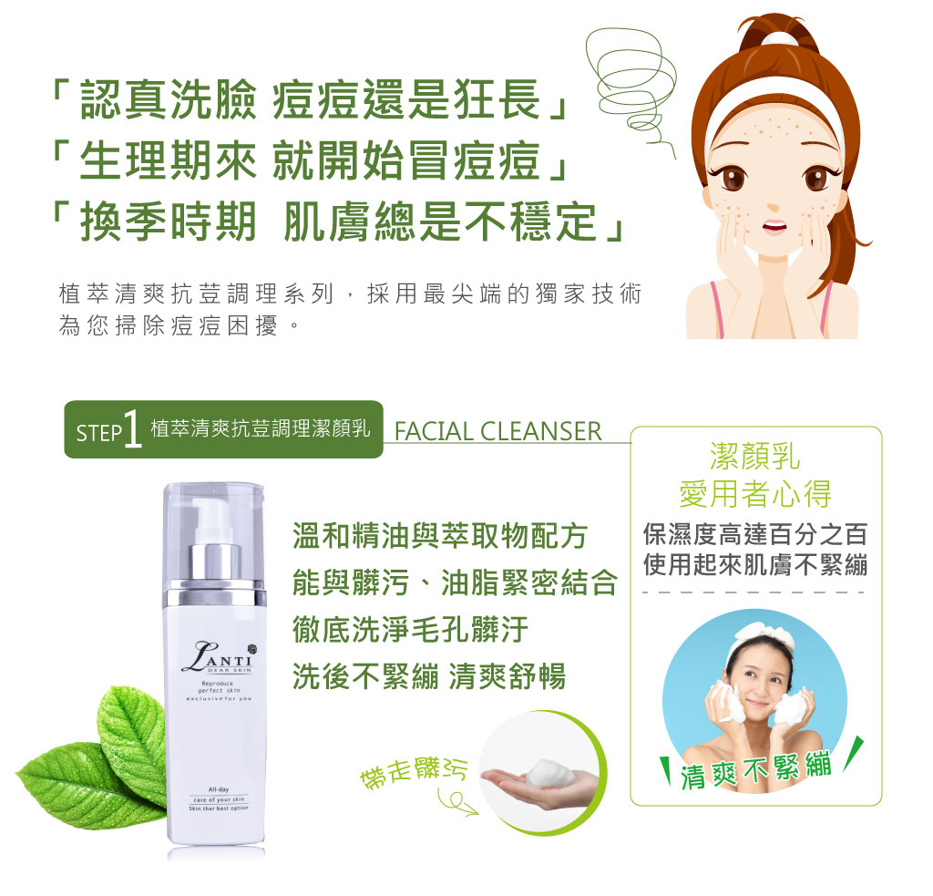 ◆商品名稱: Lanti植萃清爽抗荳調理精華液
