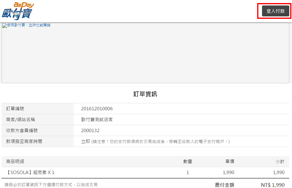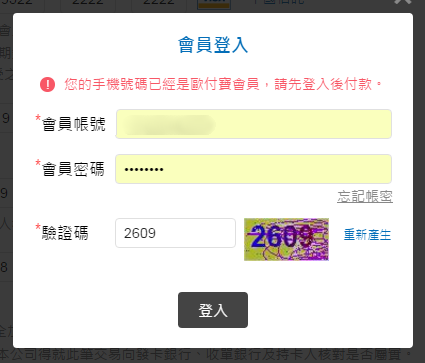 • 依據第三方支付專法規定使用歐付寶結帳,需要先登入歐付寶會員(實名制認證)。